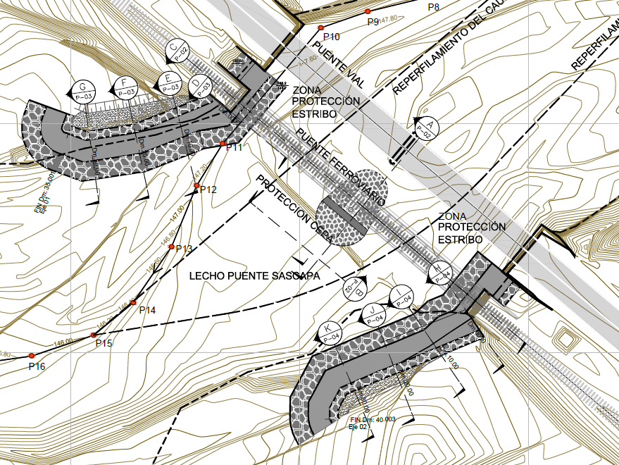 Estudio y desarrollo de proyecto de protección en estribos de puentes ferroviarios.